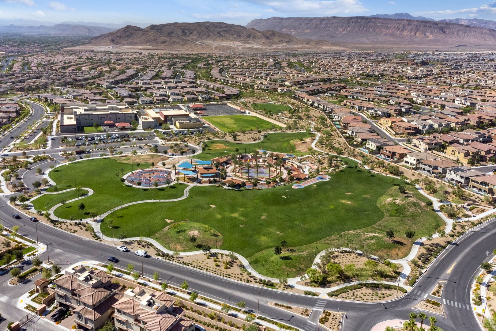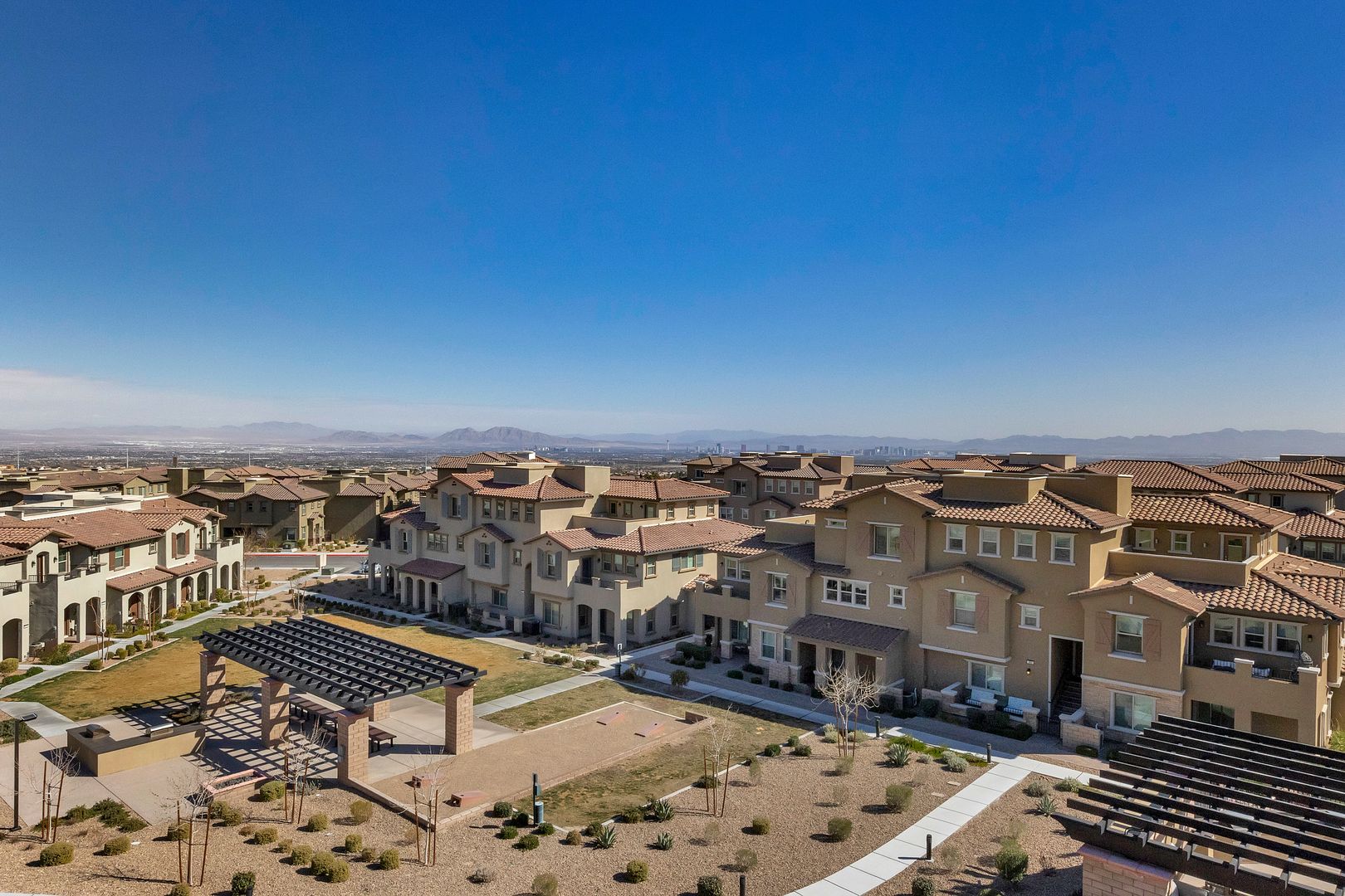 GORGEOUS 3 bedroom-2.5 bath located in SANTA ROSA BELLAMAR, NEWER SUMMERLIN COMMUNITY close proximity to popular schools and parks. Entertain & cook delicious meals in a GOURMET KITCHEN equipped with STAINLESS STEEL APPLIANCES, Mahogany Shaker cabinets and sparkling granite counters w/ island. Separate laundry room w/ W/D. Stunning unobstructed views of the Las Vegas Strip & serene mountains from the privacy of your own PANORMIC ROOFTOP DECK. This is corner elevated unit with unbeatable views. Conveniently located across from the Impressive and popular Fox Hills Park minutes from shopping & dining options at Red Rock Casino and Downtown Summerlin! Community has impressive amenities include huge pool, spa, lounge areas, BBQ/Picnic areas, firepit, and cornhole for their resident’s use. The two-car attached garage has plenty of room for your cars to park plus storage. Monthly landscape, sewer and trash included in the total periodic rent.